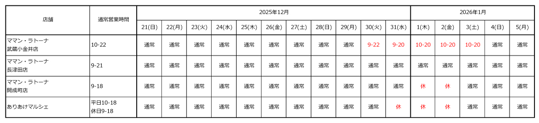休業期間:2025年12月30日(火)~2026年1月4日(日)